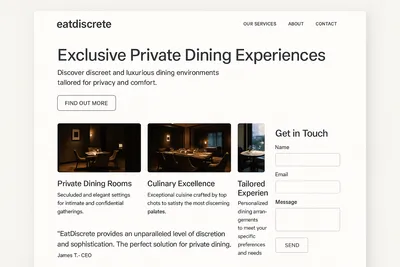 Introducing EatDiscrete.com, the ultimate domain for a business dedicated to offering exclusive dining experiences that prioritize privacy and discretion. In a world where high-profile individuals, celebrities, and top executives constantly seek secluded places to dine and converse in total confidentiality, EatDiscrete.com is a one-of-a-kind gateway to creating a highly sought-after service. Leverage this domain to develop a refined platform that connects exclusive private dining venues with a clientele that values and demands privacy. This is your opportunity to craft a brand synonymous with luxury, seclusion, and top-tier service—a perfect match for high-net-worth individuals seeking an exquisite culinary experience without the prying eyes.